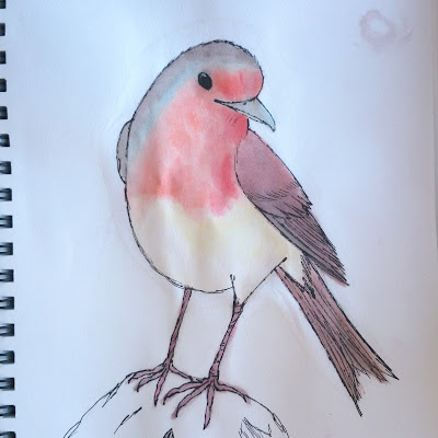 Here's waterpaint of robin, with and without outline detailed. Again, bigger ones.