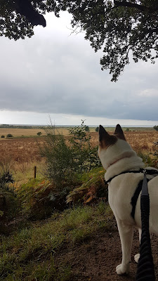 We took an evening walk to this field that literally from the doorstep, here's Akira meeting a big 'dog'.